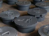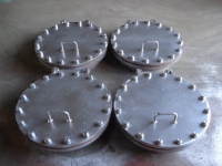 由于人孔安裝在油罐的下層體圈上,防滲漏就顯得特別重要。要求兩法蘭結合面須保證其平直度,無飄扭現象。加強板和法蘭應盡量在整塊鋼板上切割而不拼接。法蘭和蓋板上加工有密封圈,在施工中要特別注意保護。密封用3mm厚石棉橡膠墊片,不允許有折裂。安裝人孔蓋板上緊螺栓時,要成對角均勻用力,以防孔蓋變形。